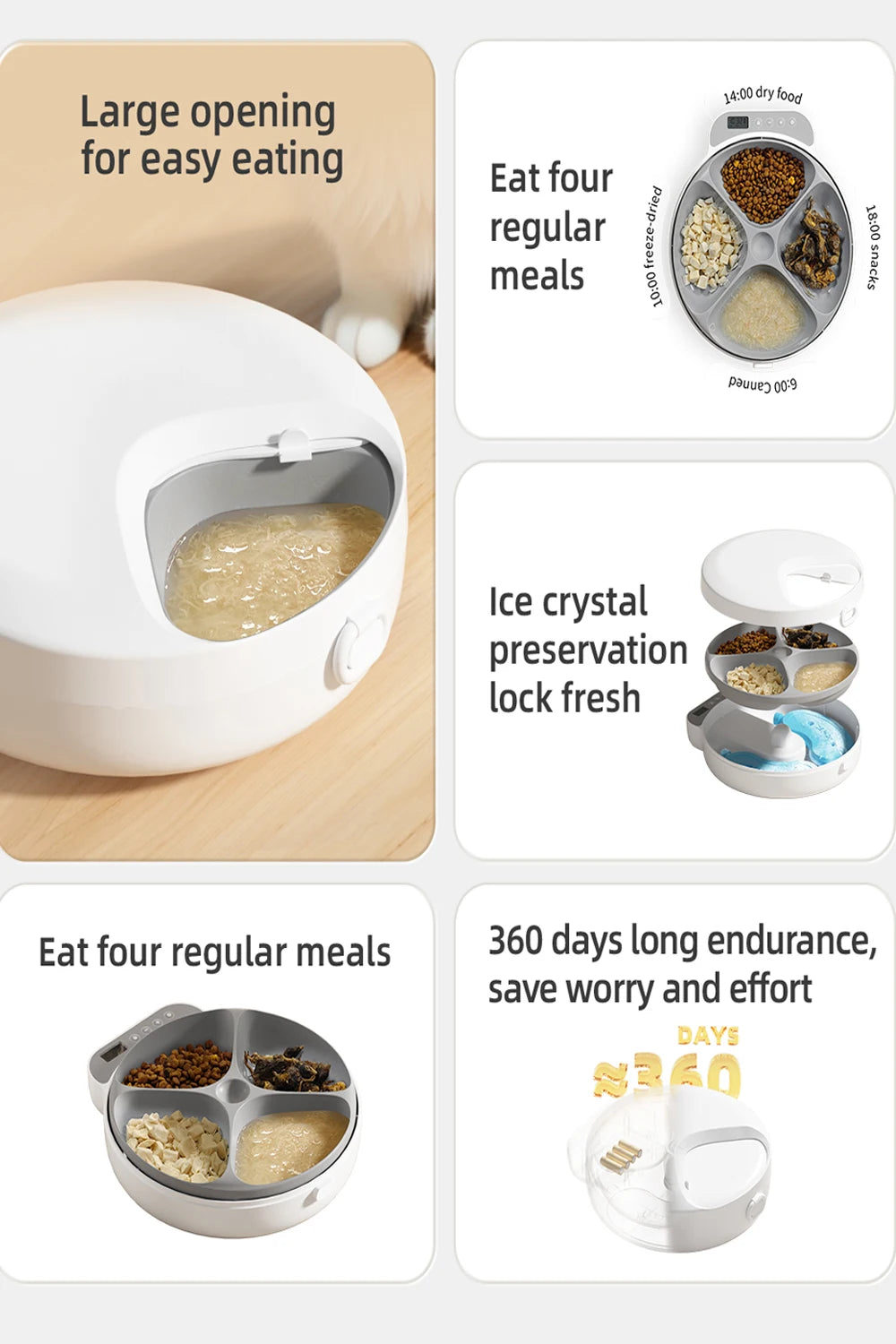 Transform mealtime into a healthy, stress-free experience with this innovative 4-meal automatic feeder that keeps food fresh while promoting slower, healthier eating habits. Ideal for busy pet owners who want to maintain consistent feeding schedules for their cats and dogs.
