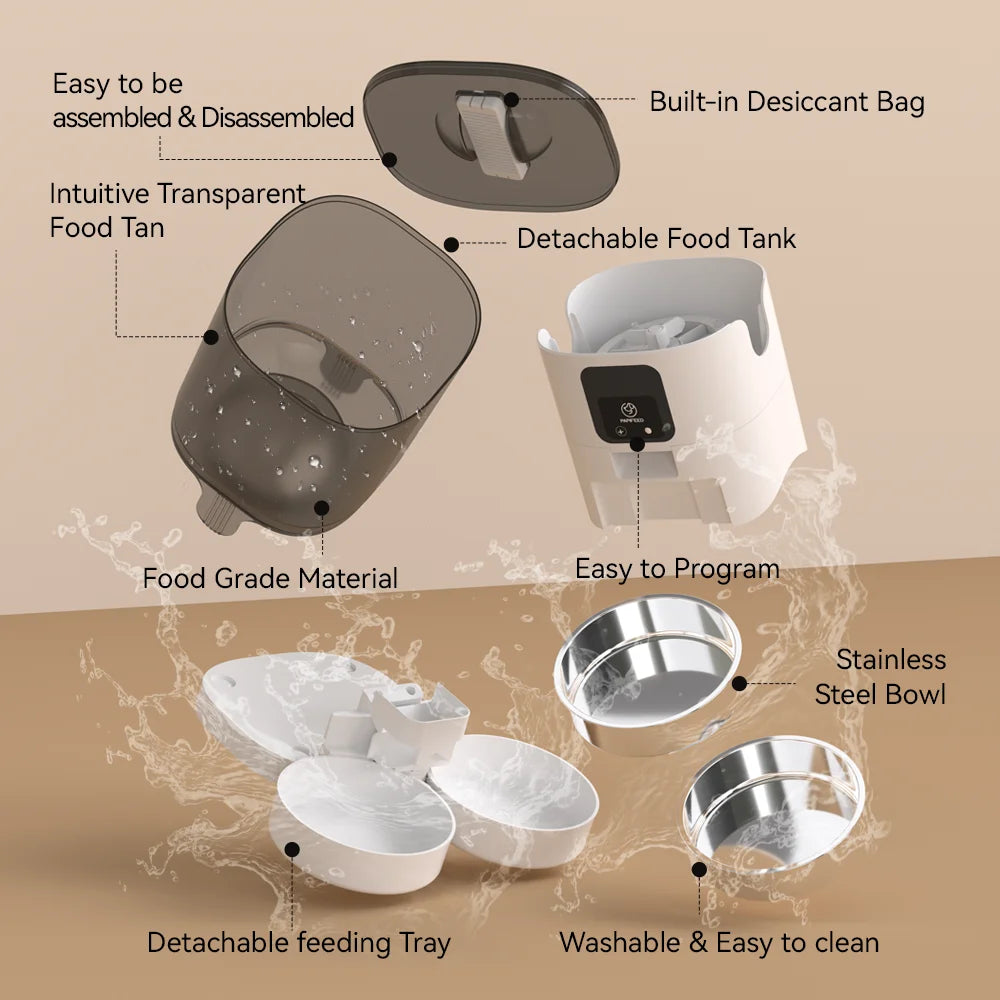 - Precision Timing & Portions: Schedule exact feeding times and control portion sizes to maintain your pet's healthy diet