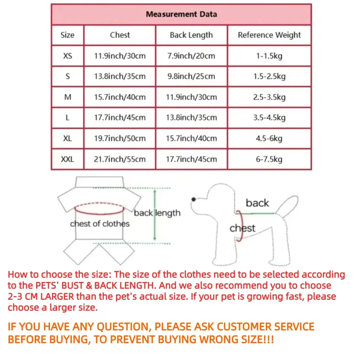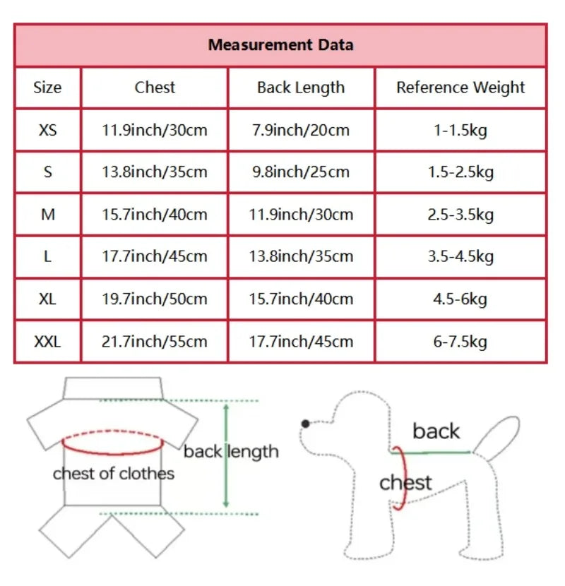 Size | Back Length | Chest Girth | Suitable Breeds |
