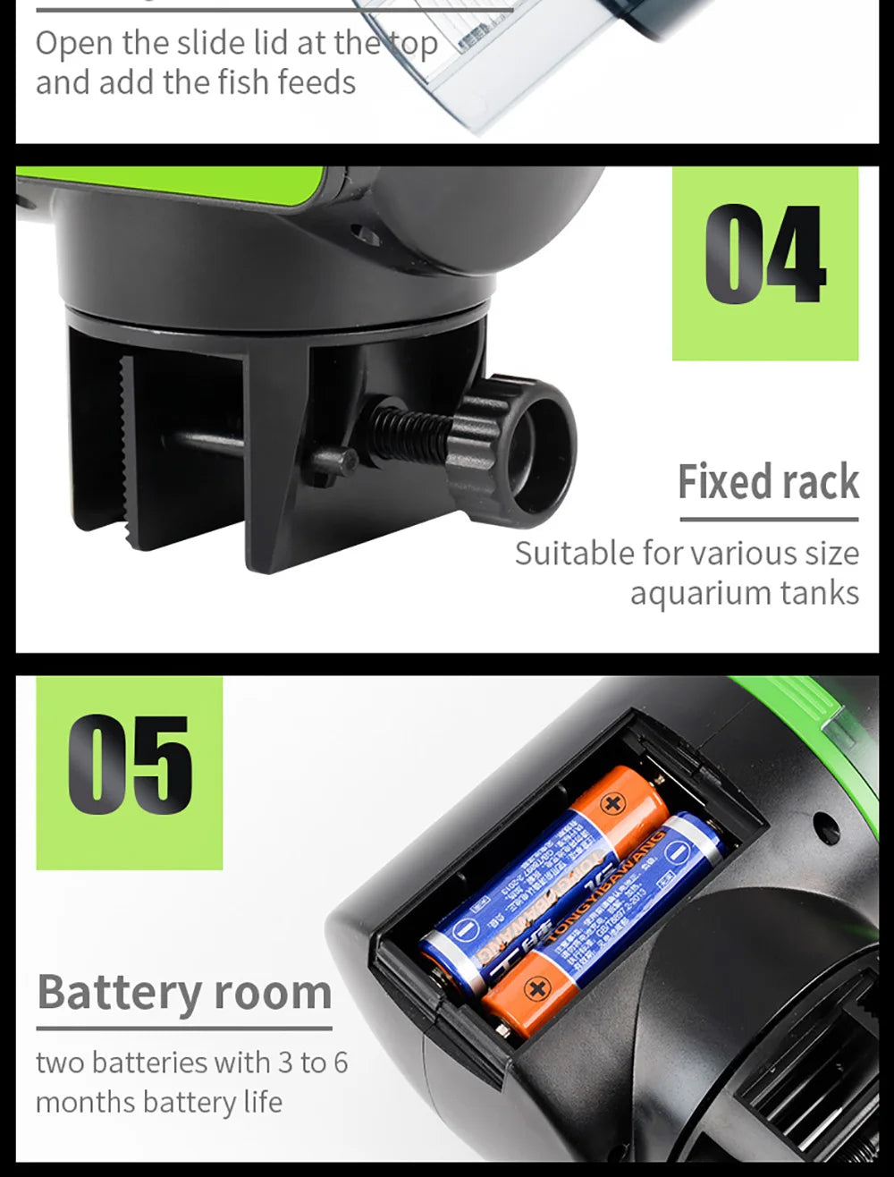 Enjoy peace of mind knowing your aquatic companions are well-fed and cared for, whether you're at home or away. This feeder takes the guesswork out of portion control and timing.