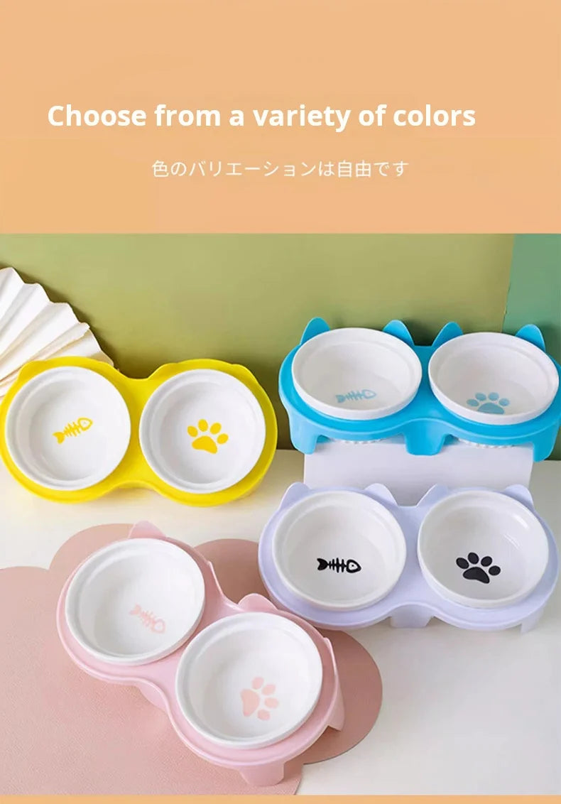 Elevated Ceramic Pet Bowl Set - Double Bowl Design for Neck Protection