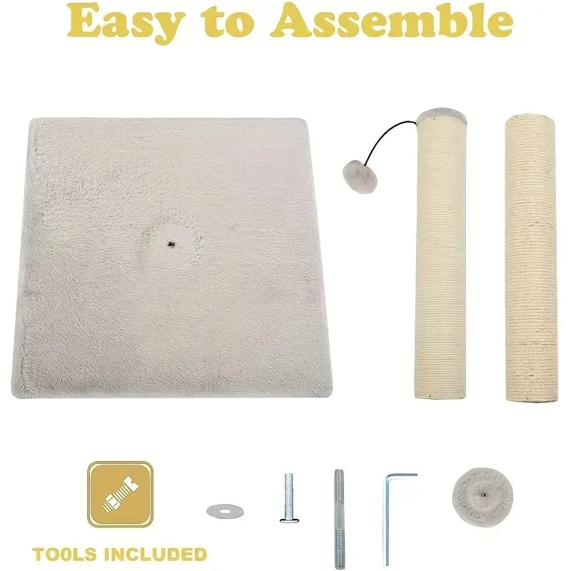- Dual-Texture Design — Natural sisal rope for scratching below; soft smooth plush covering above for comfort and lounging