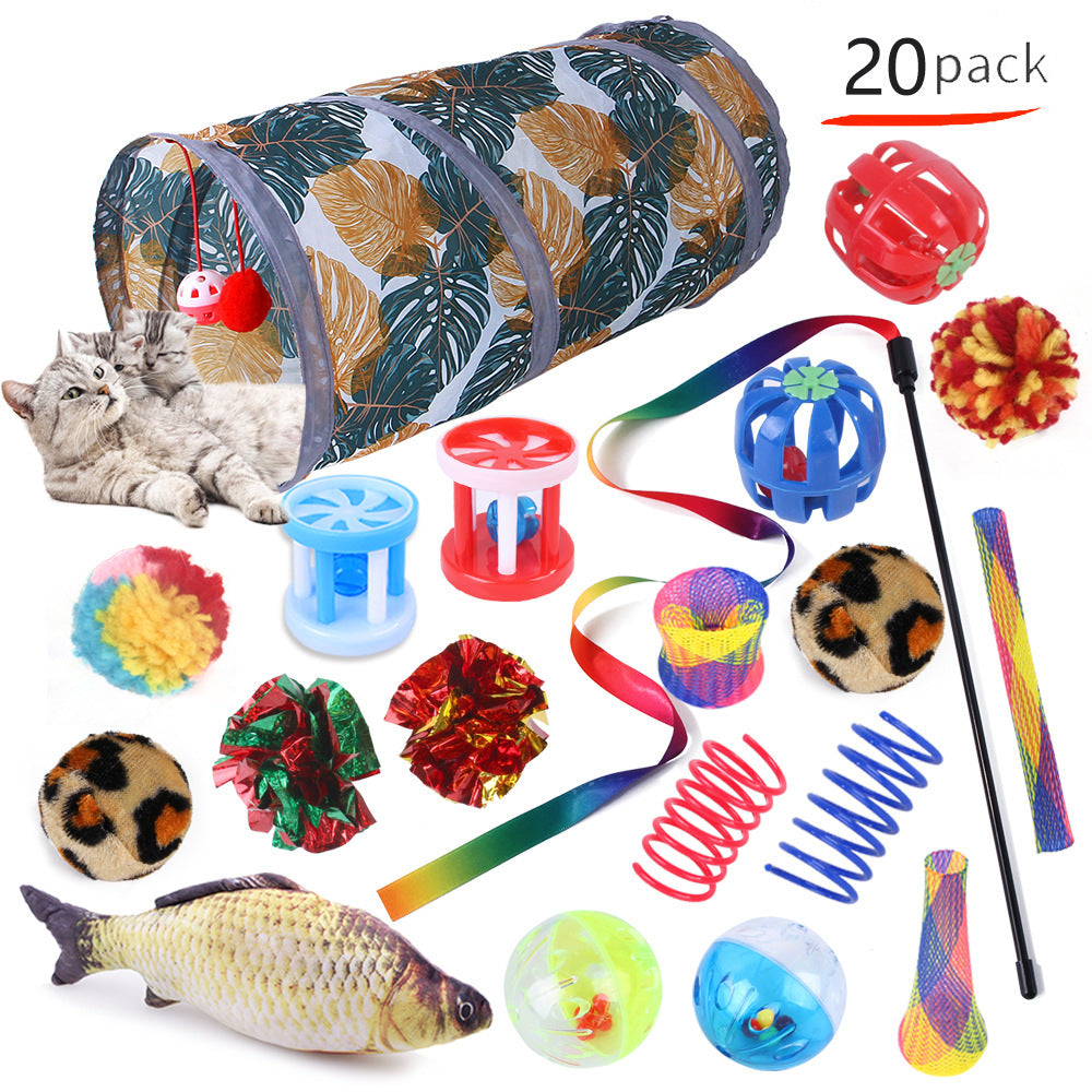 Foldable Cat Play Tunnel with Toys - Interactive Tent for Kittens