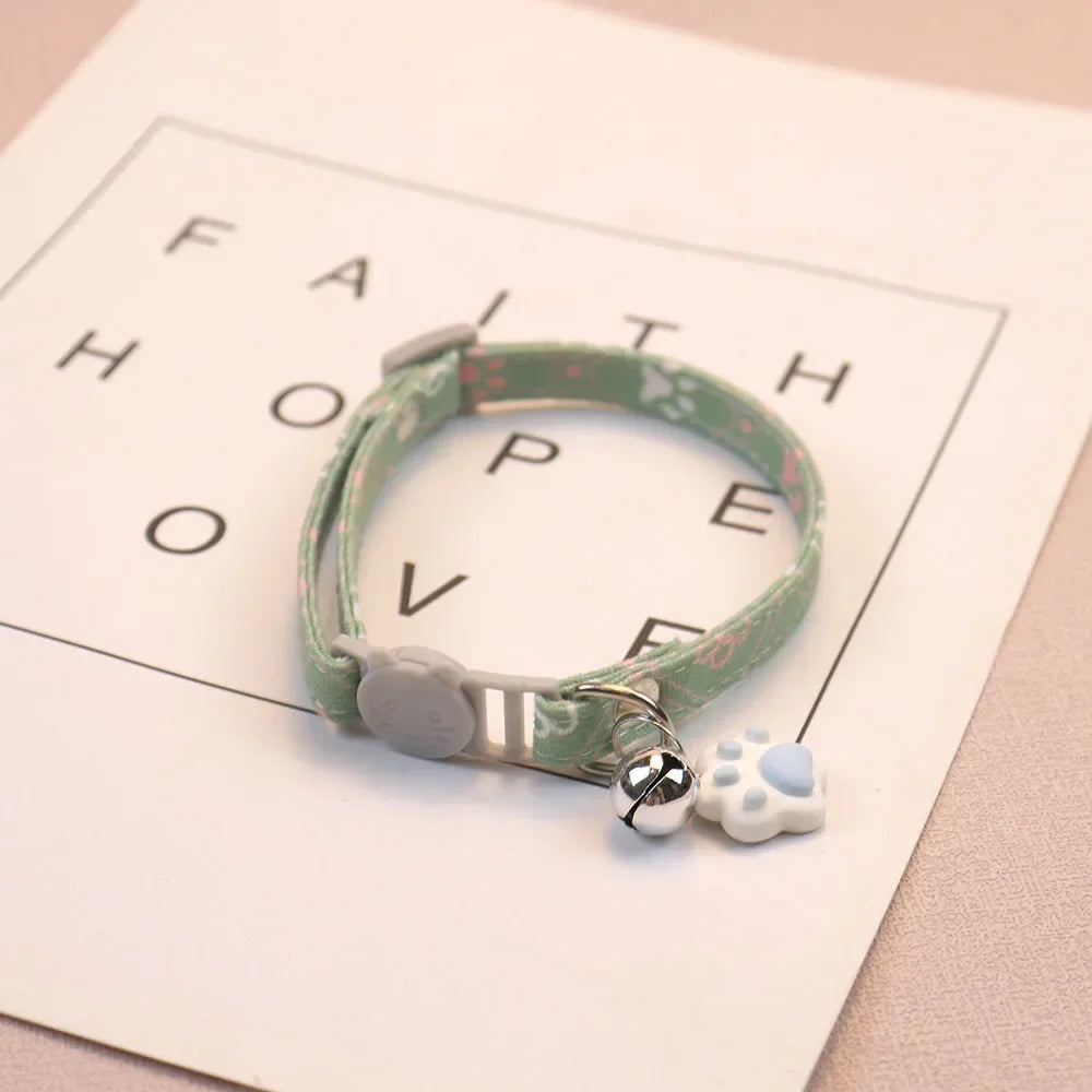 Keep your pet safe and stylish with this adorable adjustable collar featuring a breakaway safety buckle and charming bell. Perfect for cats, kittens, puppies, and small dogs.