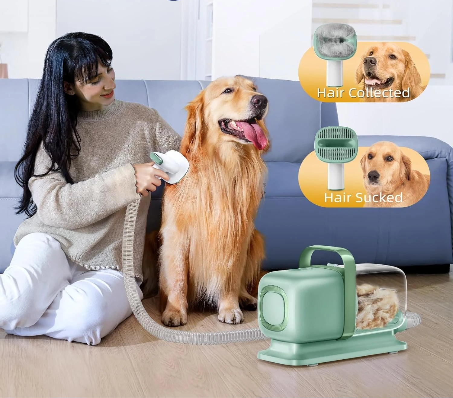 - Adjustable Suction: Three power levels to suit different coat types and pet comfort