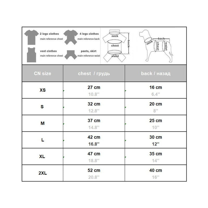 Please measure your pet carefully before ordering to ensure the perfect fit. Measure from neck to base of tail for length, and around the widest part of the chest for girth.