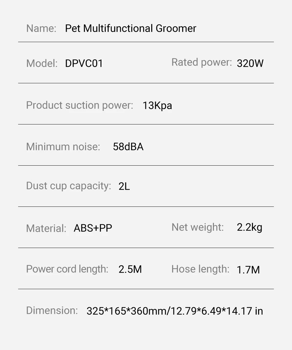 - 5 Grooming Tools in One: Complete grooming kit with multiple attachments for trimming, brushing, and vacuuming
