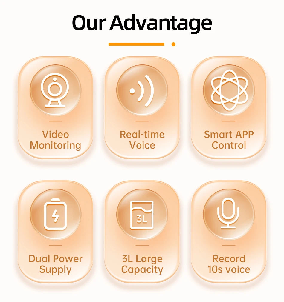 - Smart Voice Recording: Record personal messages to comfort and call your pets during feeding