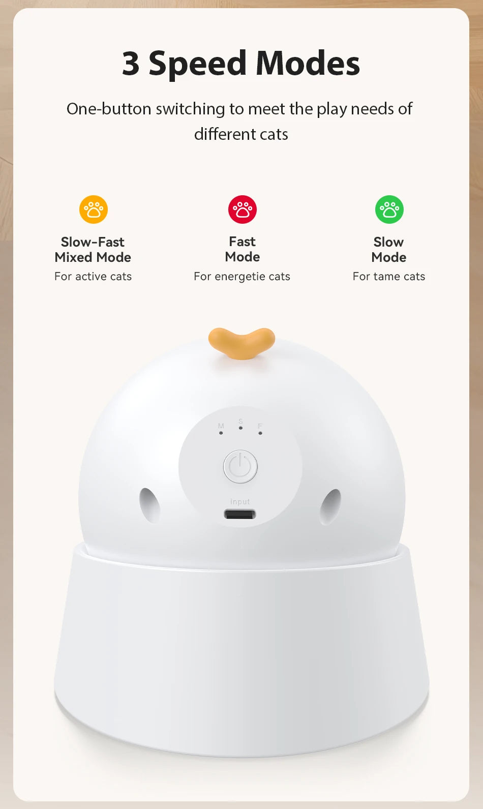- Adjustable Play Modes: Multiple settings to match your pet's energy level and mood