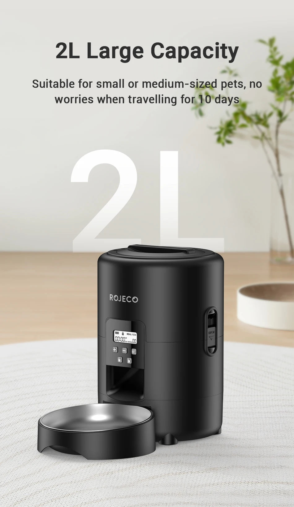 - 2L Large Capacity - Holds enough kibble for several days of feeding