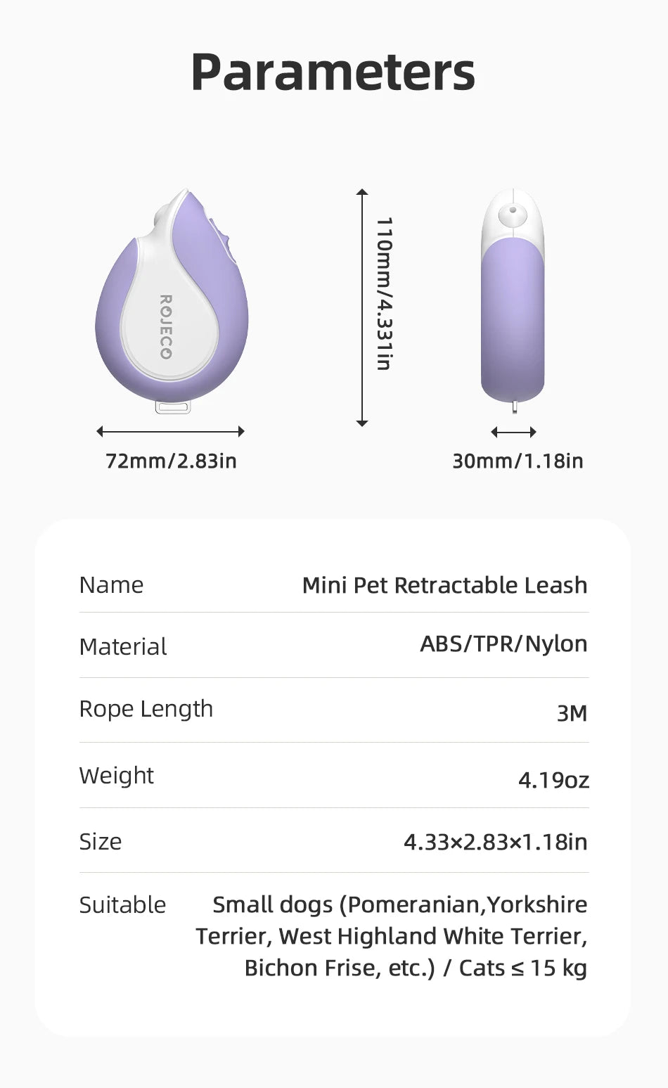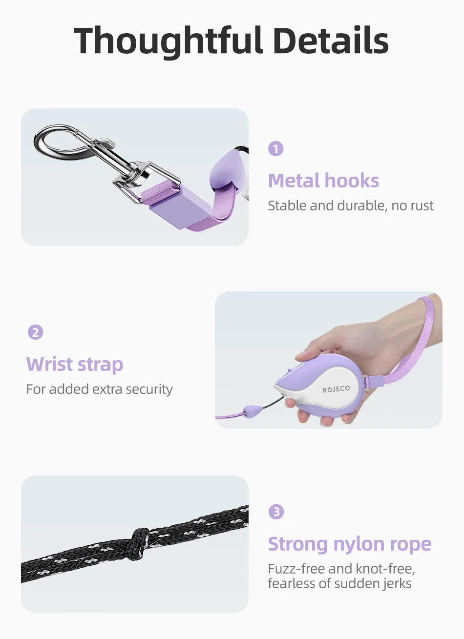 - Leash Type: Retractable rope with automatic roulette mechanism