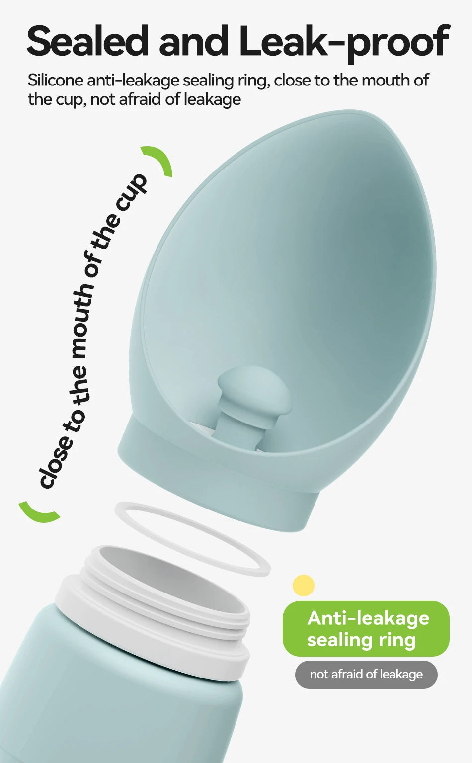 - 2-in-1 Design - Water bottle with integrated foldable drinking bowl