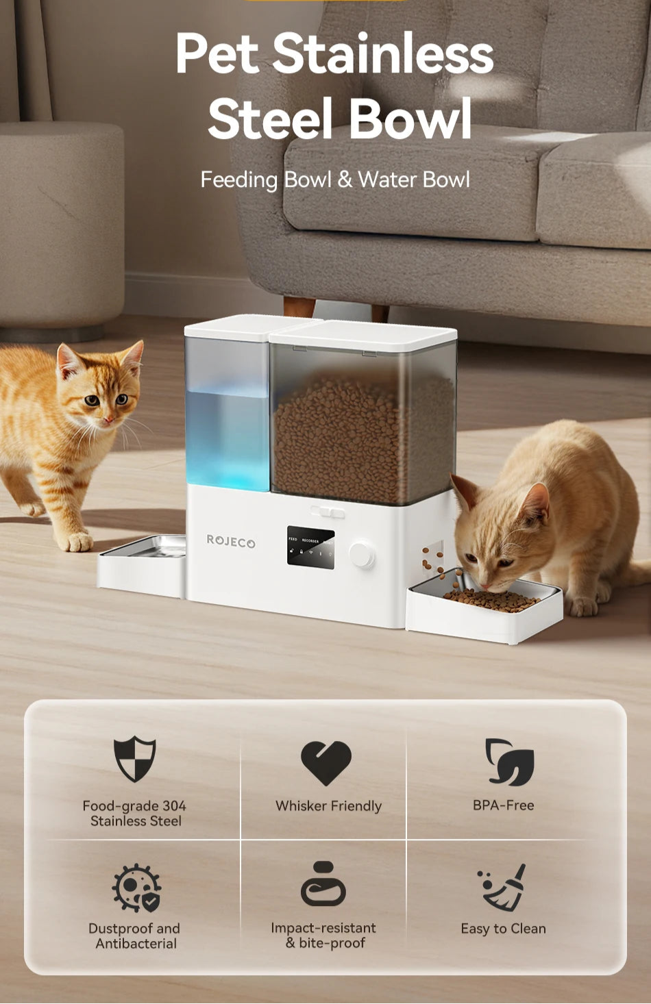 Stainless Steel Feeding & Water Bowl Set for 8.5L Automatic Pet Feeder
