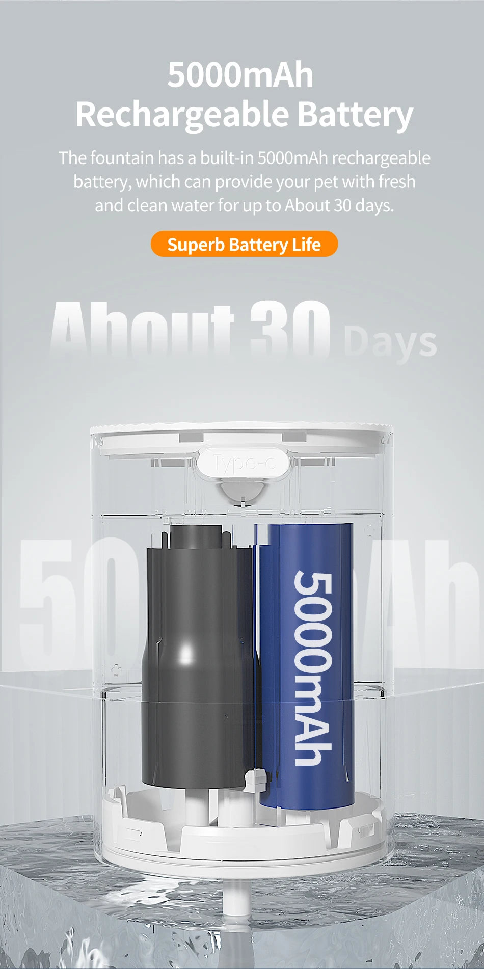 Imagine the freedom of placing your pet's water fountain anywhere in your home without worrying about power outlets or unsightly cords. This intelligent fountain creates a spa-like drinking experience that adapts to your pet's needs while conserving energy through smart sensor technology, ensuring every sip is fresh and inviting.