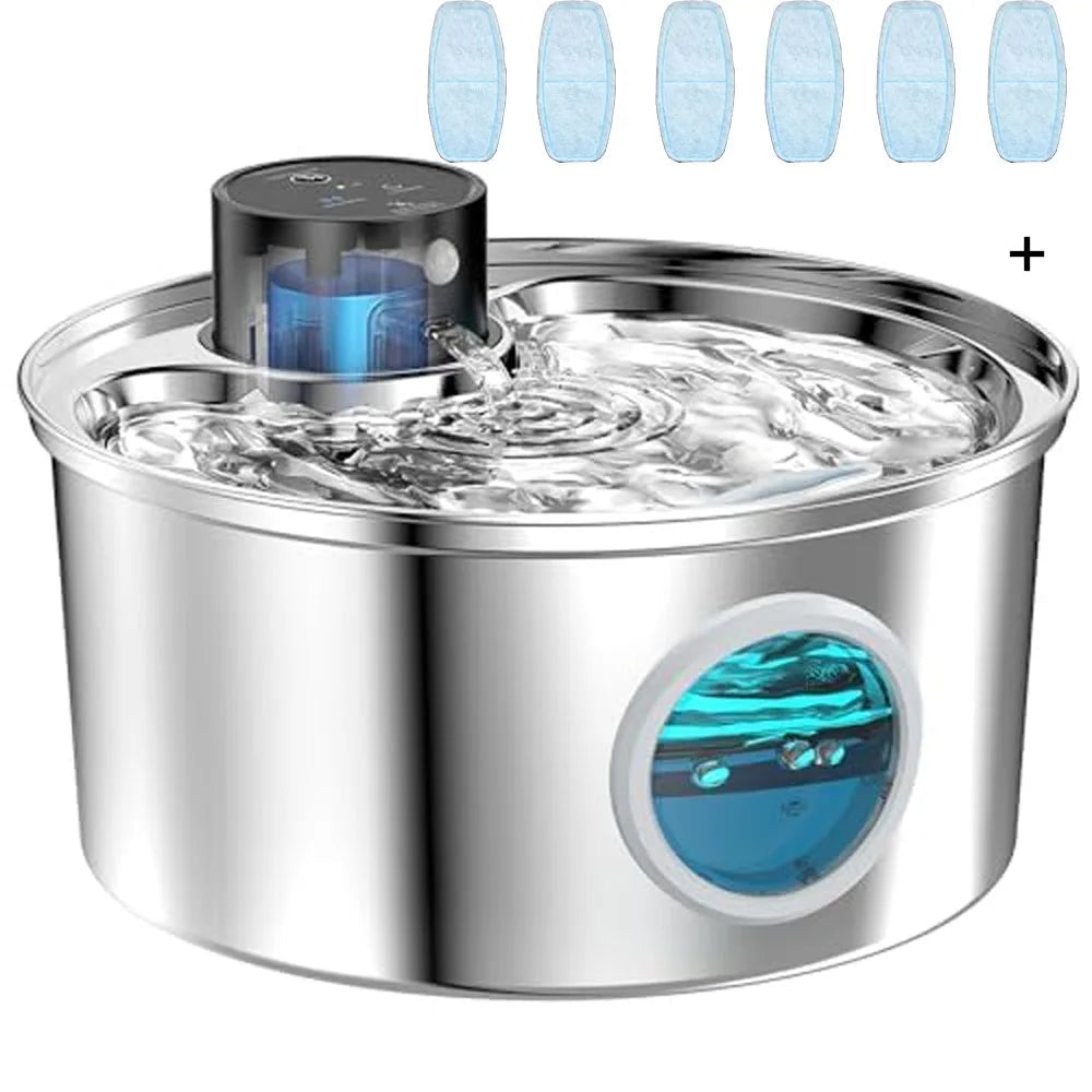Wireless Motion Sensor Pet Water Fountain - Rechargeable Stainless Steel with Filter