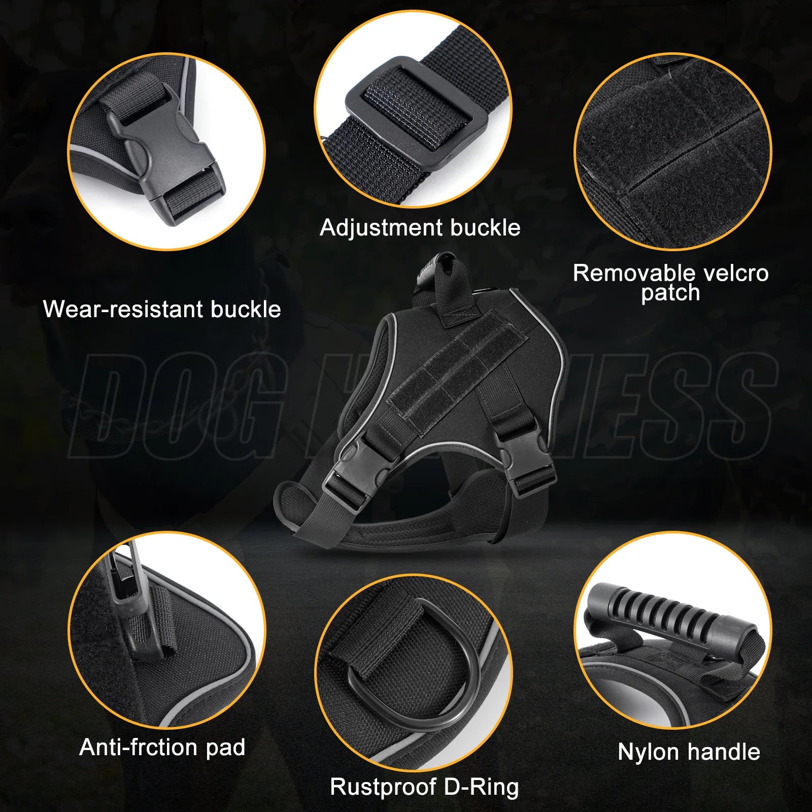 Equip your large dog with this professional-grade tactical harness, designed for training, outdoor adventures, and working dog applications.