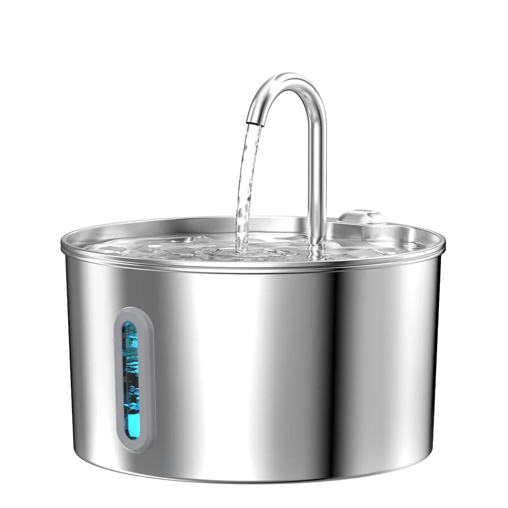 2.2L Automatic Pet Water Fountain - Stainless Steel Silent Water Dispenser with Window